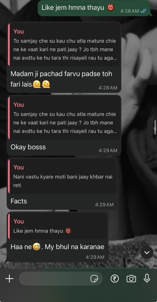 I read our old chats today, You can see in your whatsapp i have deleted on text of 1.44pm it was the text of informing you that i am reading our old chats and really enjoying it.